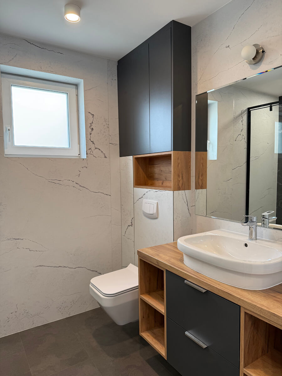 Zastosowane technologie, takie jak powietrzne pompy ciepła oraz trójszybowe okna, gwarantują efektywność energetyczną i komfort termiczny.