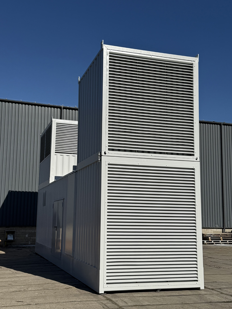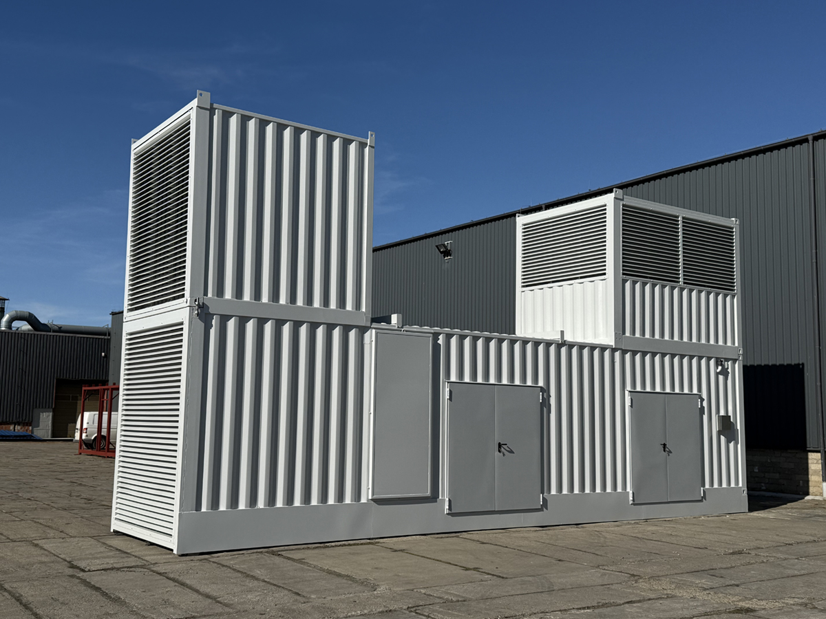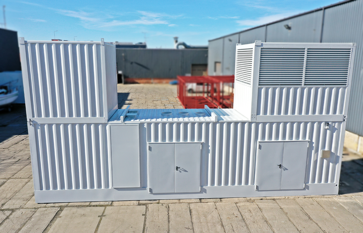 Kontener wyposażono w żaluzje wlotowe i wylotowe, tłumik wyrzutowy spalin, automatyczne przepustnice oraz 3 pary drzwi podwójnych. Posiada również zbiornik paliwa o pojemności 3000 l, z możliwością podłączenia do zewnętrznego źródła paliwa. Dzięki zastosowaniu nowoczesnych materiałów, hałas na zewnątrz kontenera nie przekracza 85 dB.