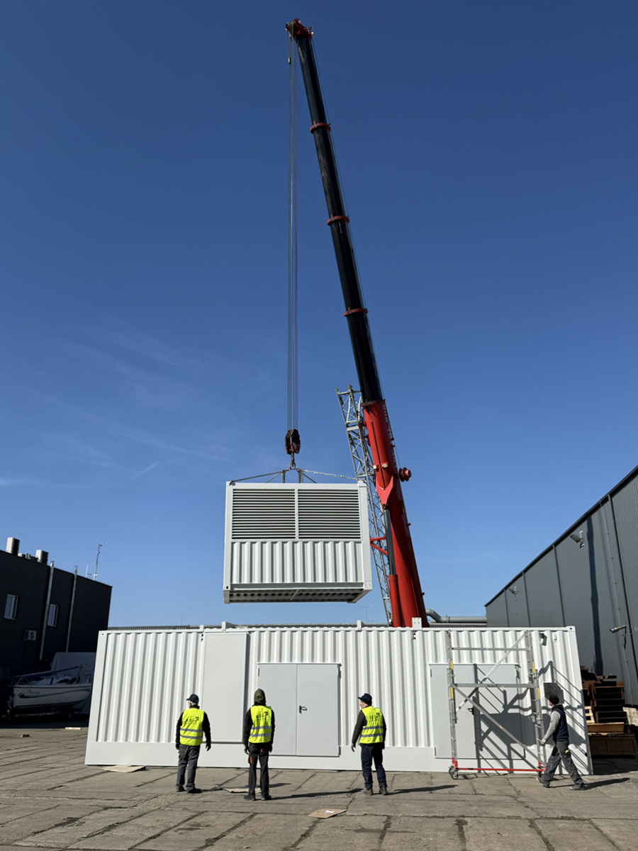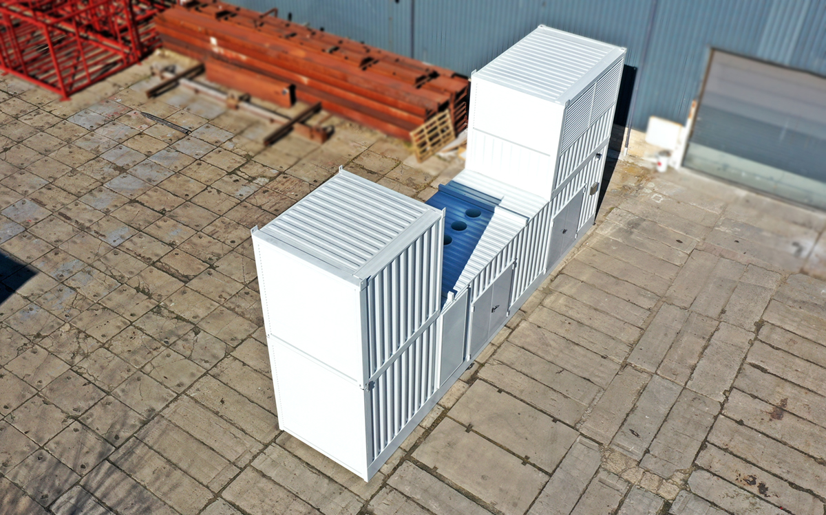 Kontener 3 Segmentowy to specjalistyczne pomieszczenie przystosowane do obsługi agregatu prądotwórczego o mocy 3,3 MVA. Ze względu na rozmiary agregatu (27 ton), kontener został poszerzony i podwyższony, a także wyposażony w nadstawki na czerpnię i wyrzutnię.