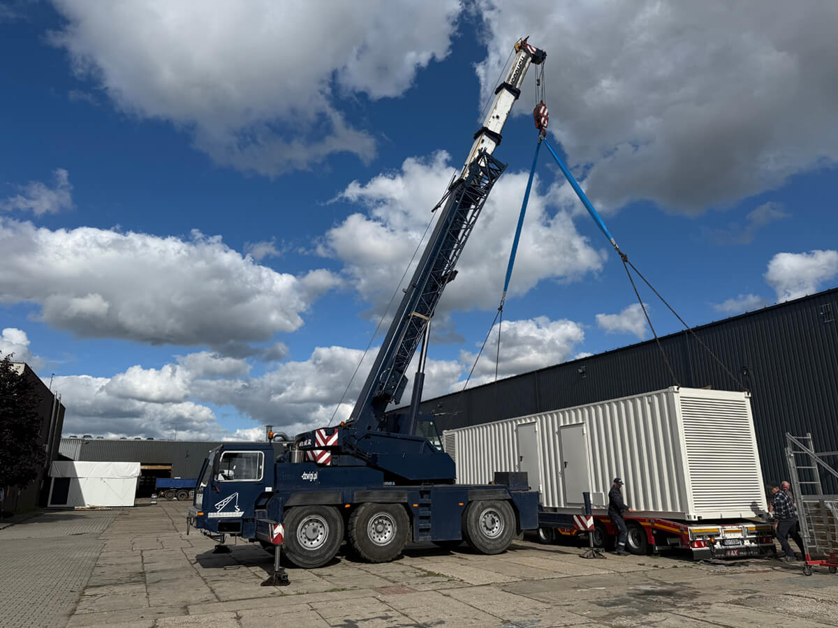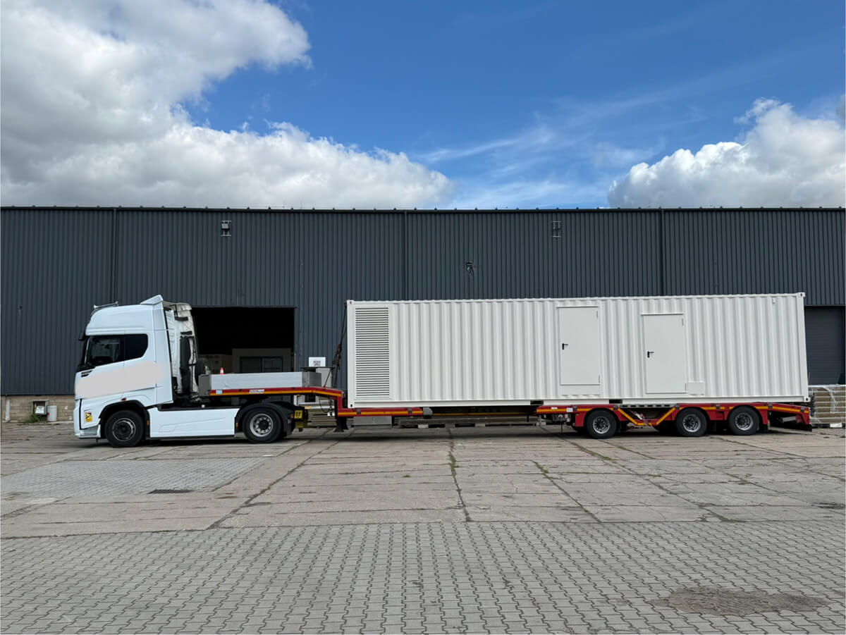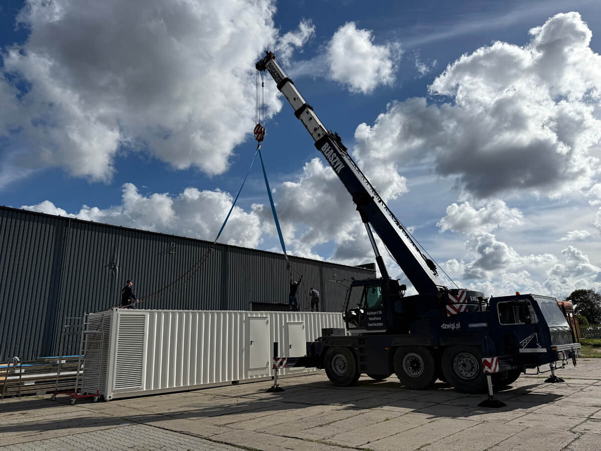 Kontener 40ft HC to przestronny obiekt indywidualnie zaprojektowany i przystosowany do obsługi agregatu prądotwórczego P1100-3M. Zewnętrzne wymiary kontenera to 2,438 m szerokości, 12,192 m długości i 2,896 m wysokości. Agregat waży 15,9 t i posiada pełne wyposażenie, w tym żaluzje wlotowe i wylotowe, automatyczne przepustnice oraz tłumik wyrzutowy spalin.