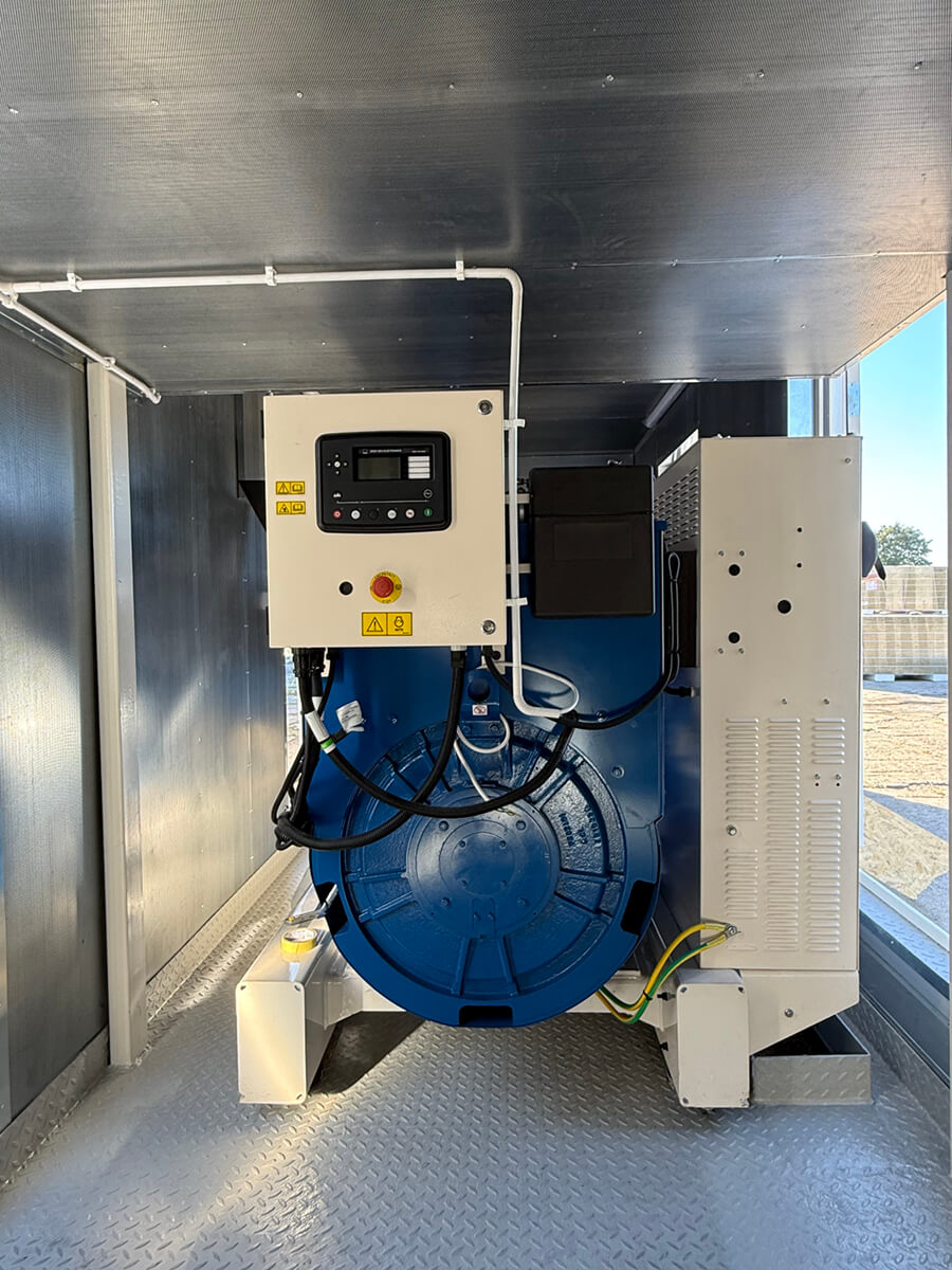 Kontener wyposażony jest w zbiornik paliwa o pojemności 1000 l, ale istnieje również możliwość podłączenia zewnętrznego źródła paliwa. Wyciszenie kontenera zapewnia hałas poniżej 85 dB na zewnątrz.
